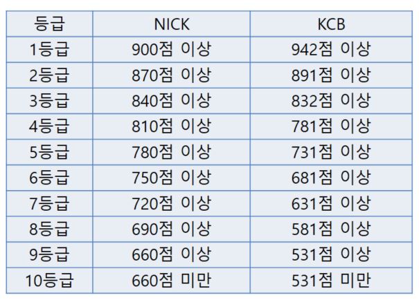 신용점수는 개인의 신용 기록을 종합적으로 평가한 것으로, 크기와 형태의 신용 거래, 상환 여부, 신용 기간, 같은 요소를 포함합니다. 신용 등급 시스템이 1~10까지 이루어졌던 과거와 달리, 2021년 이후로는 점수 기반 모델로 전환되었습니다.